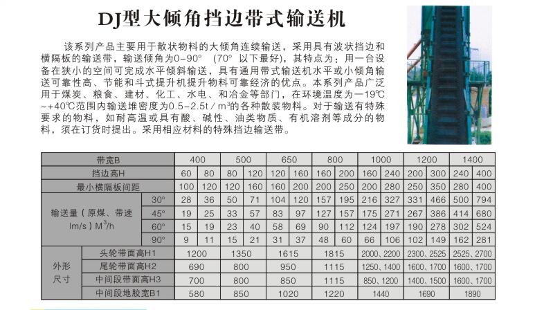 DJ型大傾角擋邊帶式輸送機
